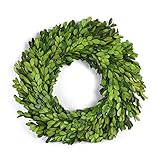 Boxwood wreaths are the one item that looks great year round. They are transitional between fall, Christmas, spring, and summer. I love a nicely preserved boxwood wreath.